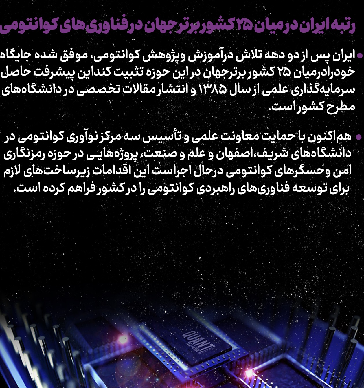 Կրթության և հետազոտությունների ոլորտում գրեթե երկու տասնամյակ նպատակային ներդրումներից հետո, Իրանն ապահովել է իր տեղը աշխարհի 25 լավագույն երկրների շարքում՝ քվանտային գիտության վերաբերյալ հոդվածների հրապարակման առումով։